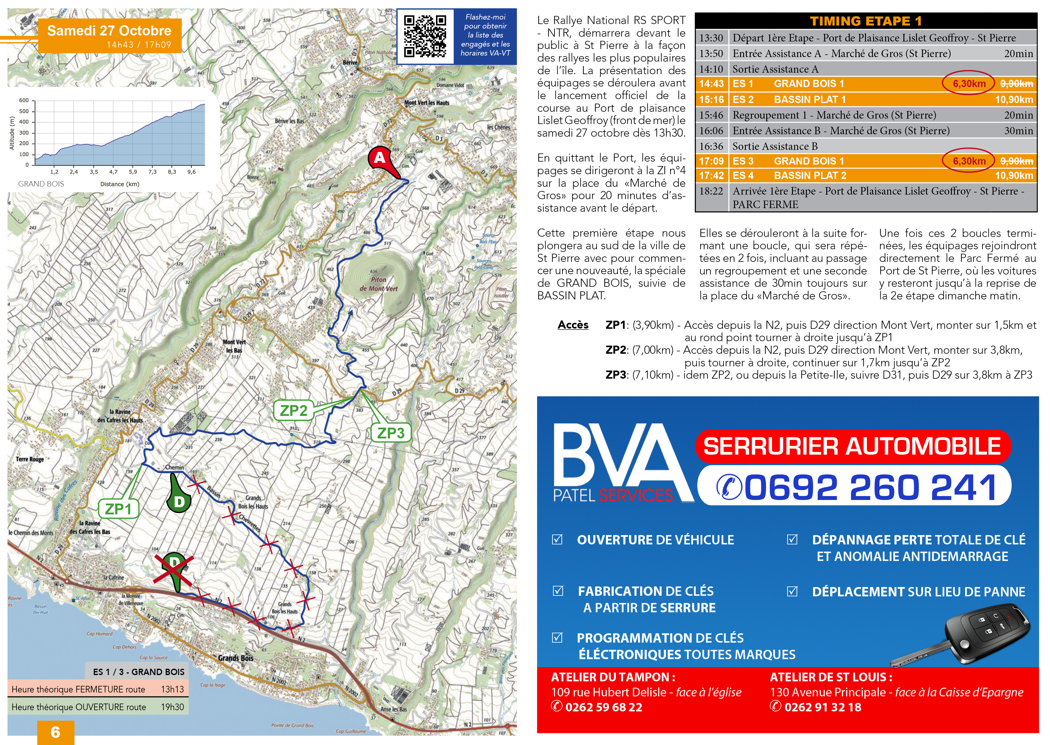 La spéciale de GRAND BOIS est raccourcie, donc avancée de 3,60 km depuis le départ initial. La nouvelle grille de lancement se situera donc à 300m avant l’intersection chemin Bassin Chevrettes et le chemin Grand-Père.